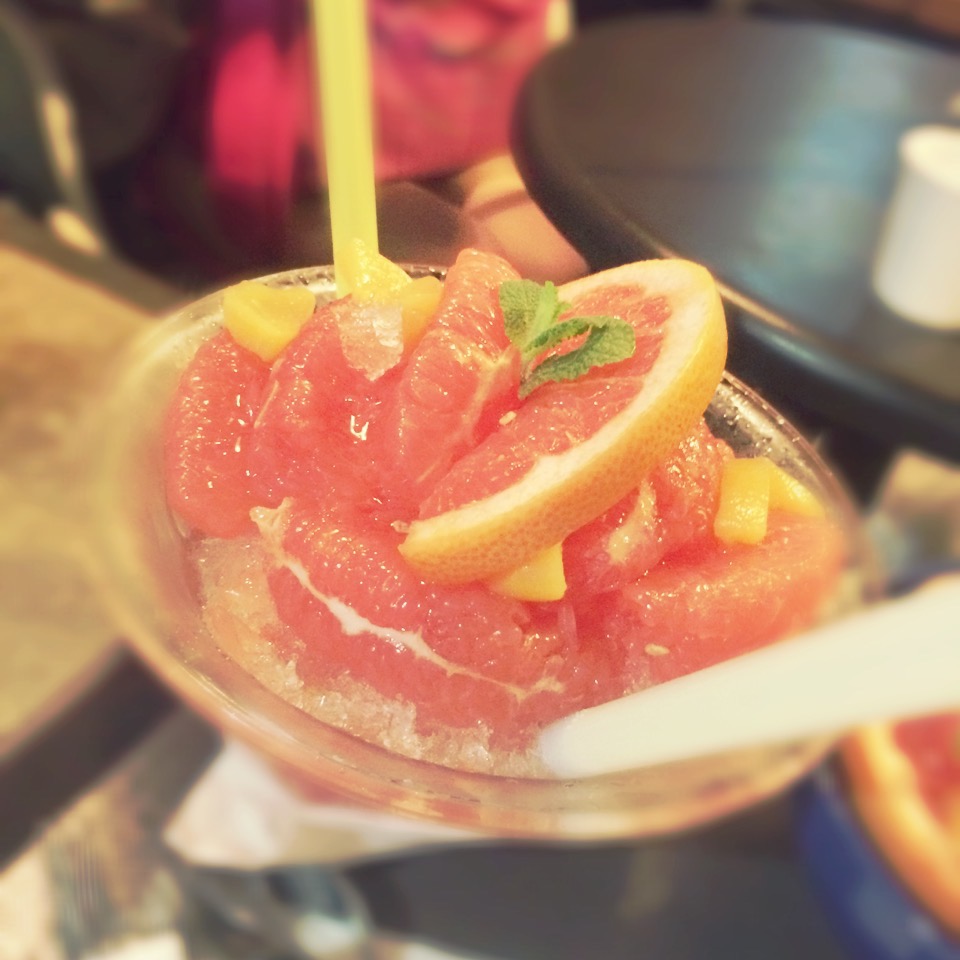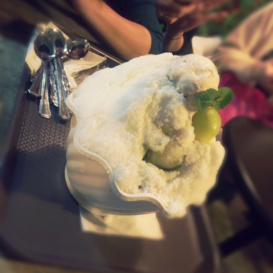 かき氷を食べ